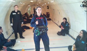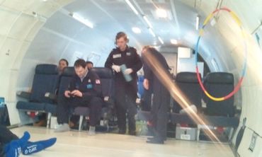 Zero Gravity ("zero g") is obtained by the plane flying vertical parabolas in a controlled airspace (FAA rules). The downward motion from the parabola's top crest to its bottom dip is when zero gravity is felt; per the height used (chosen by the flight company), zero gravity lasted 30 seconds each time.